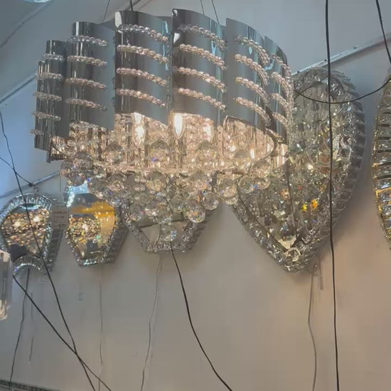 A striking crystal chandelier that combines sleek contemporary design with timeless sparkle. Its layered crystal accents and polished frame create a radiant centerpiece, casting light beautifully across any room. Perfect for adding modern luxury and sophistication to dining areas, living rooms, or entryways.