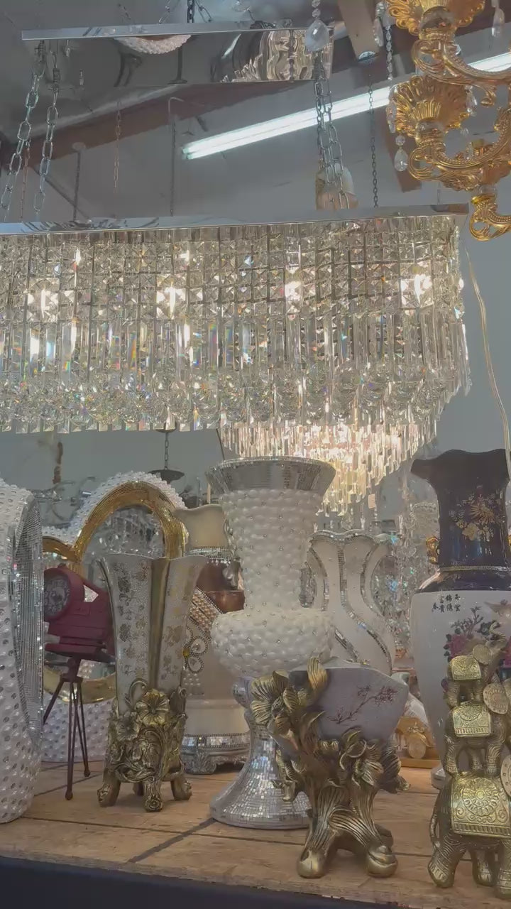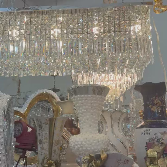 Make your space shine with this eye-catching rectangular crystal chandelier. With its clean chrome frame and cascading layers of shimmering crystals, it catches the light beautifully and adds just the right touch of glamour. Whether it’s hanging above a dining table or lighting up a living room, this piece brings a modern, luxurious feel to any room.